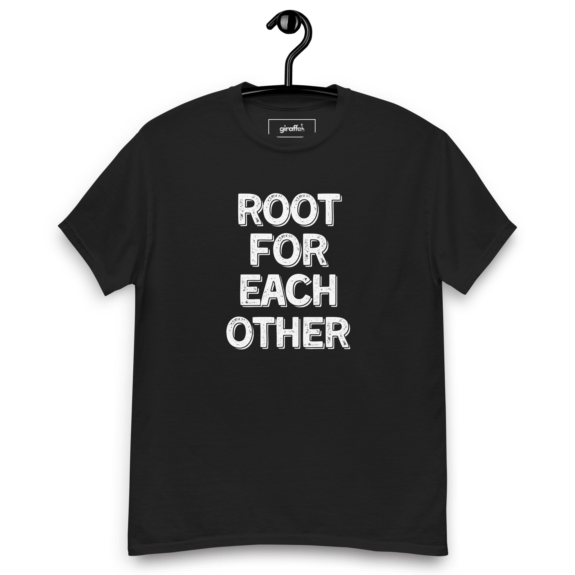 Spread kindness everywhere you go with our "Root For Each Other" positive-message T-shirt.